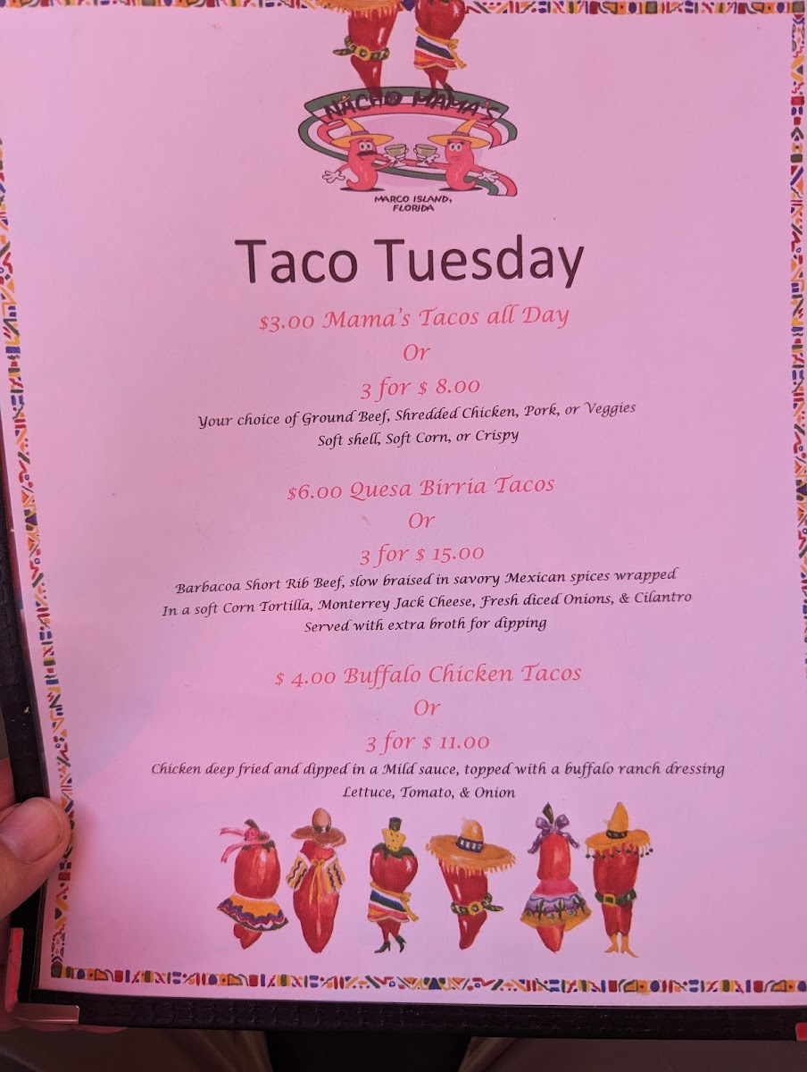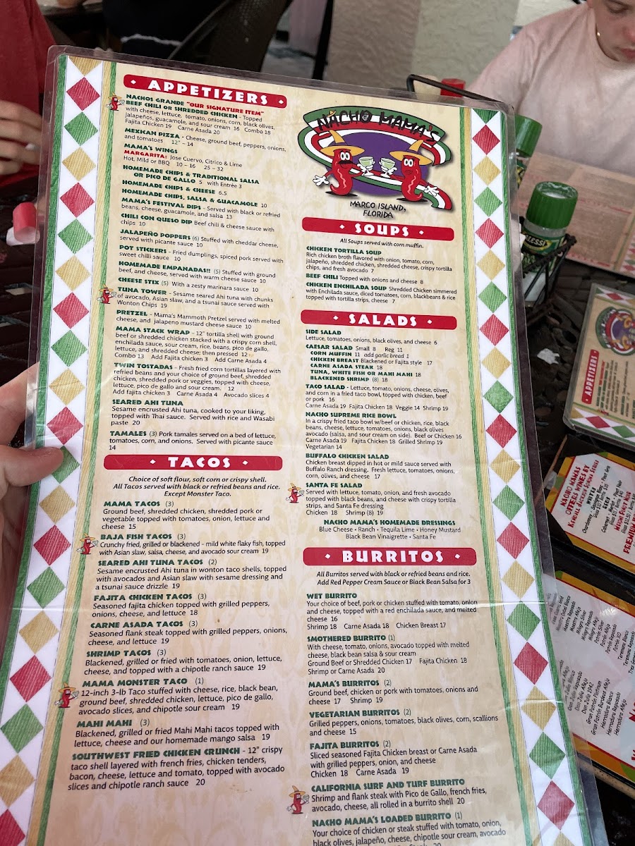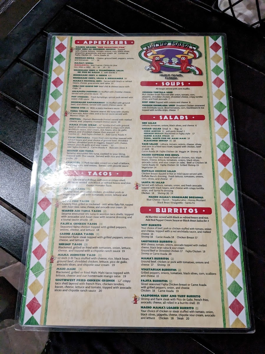 Welcome to Nacho Mama's, the vibrant Tex-Mex haven nestled in Marco Island, FL. Located conveniently at 599 S Collier Blvd, this culinary gem captures the essence of hearty Mexican cuisine with a playful twist. The menu offers a delightful array of options that cater to all tastes and preferences.